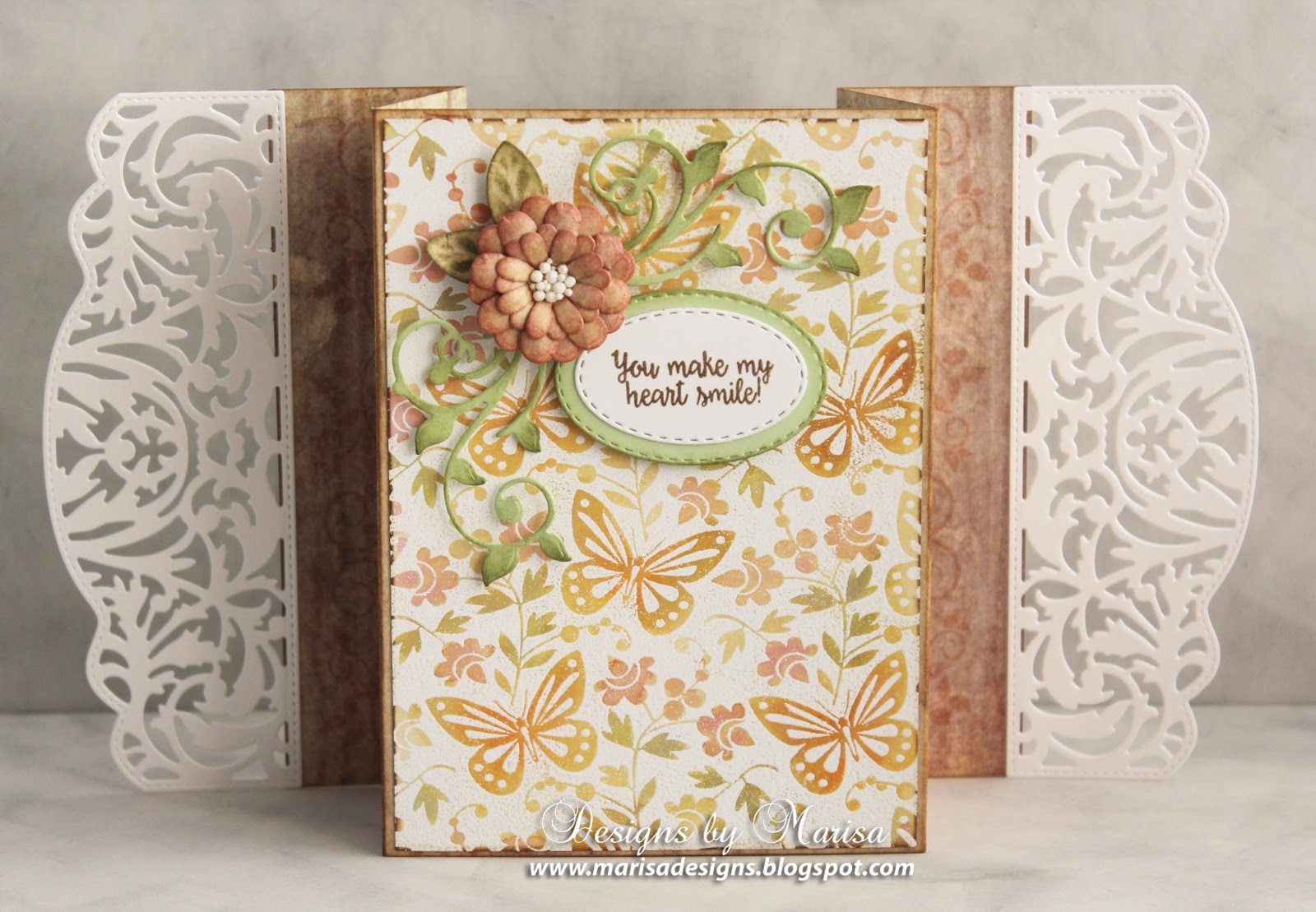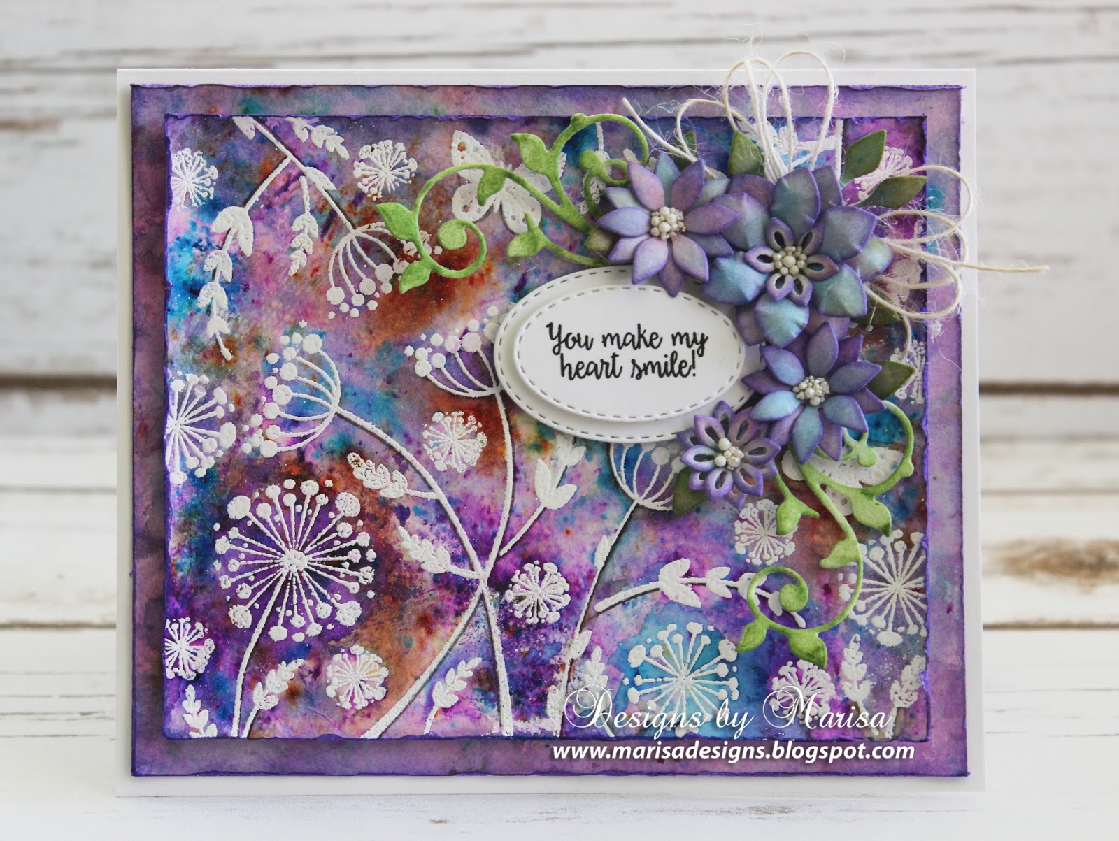 Today I have a card created with stamps and dies from the new JustRite Papercraft February Release. I had fun water coloring the background after stamping the beautiful flowers in white embossing powder.