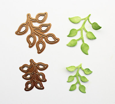 7. Die cut 2 leaf vines with Layered Leaf Vines S4-795 die set from Foamiran, color with green chalk ink.