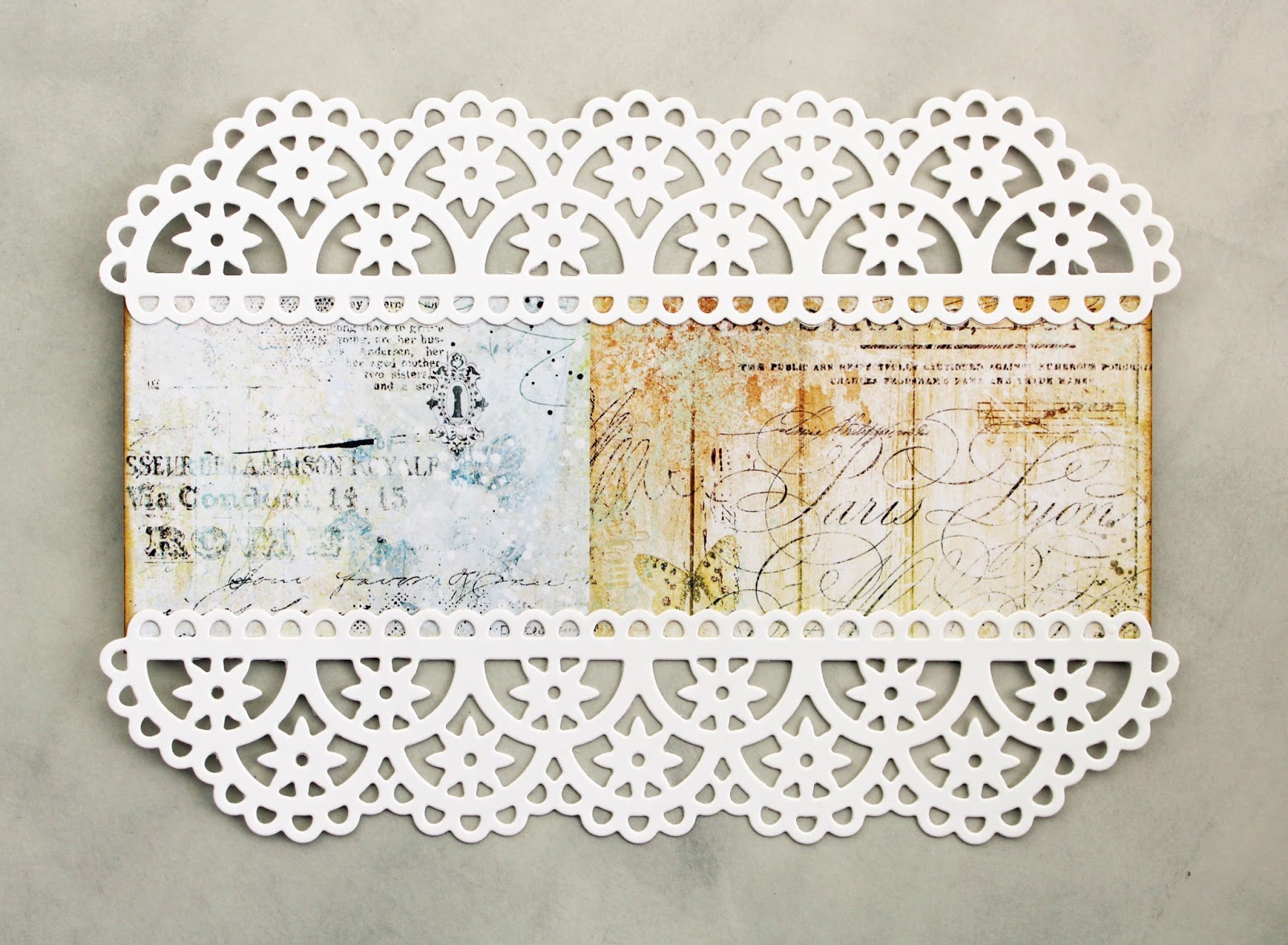 2. Die cut 2 lace borders with Flower Lace Borders S4-796 die set from white card stock.